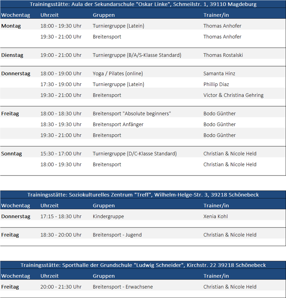 Trainingszeiten in Schönebeck